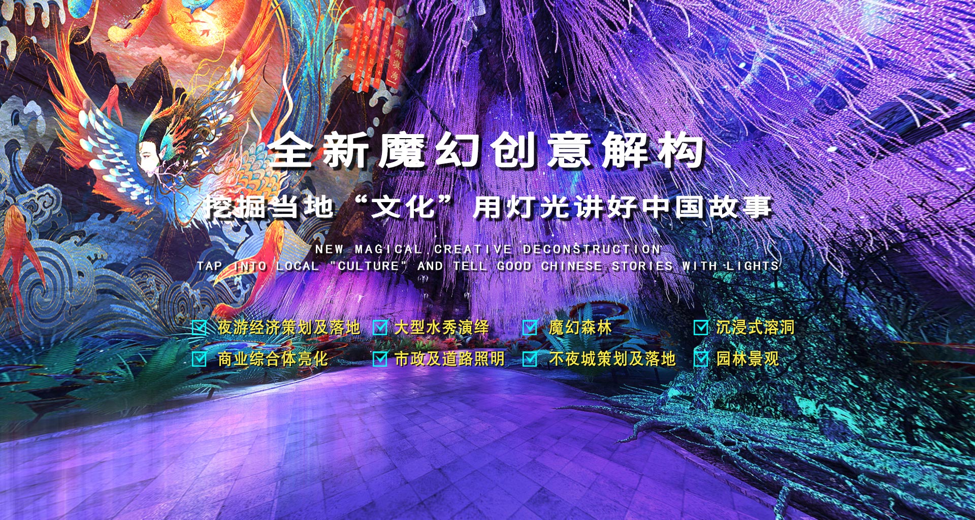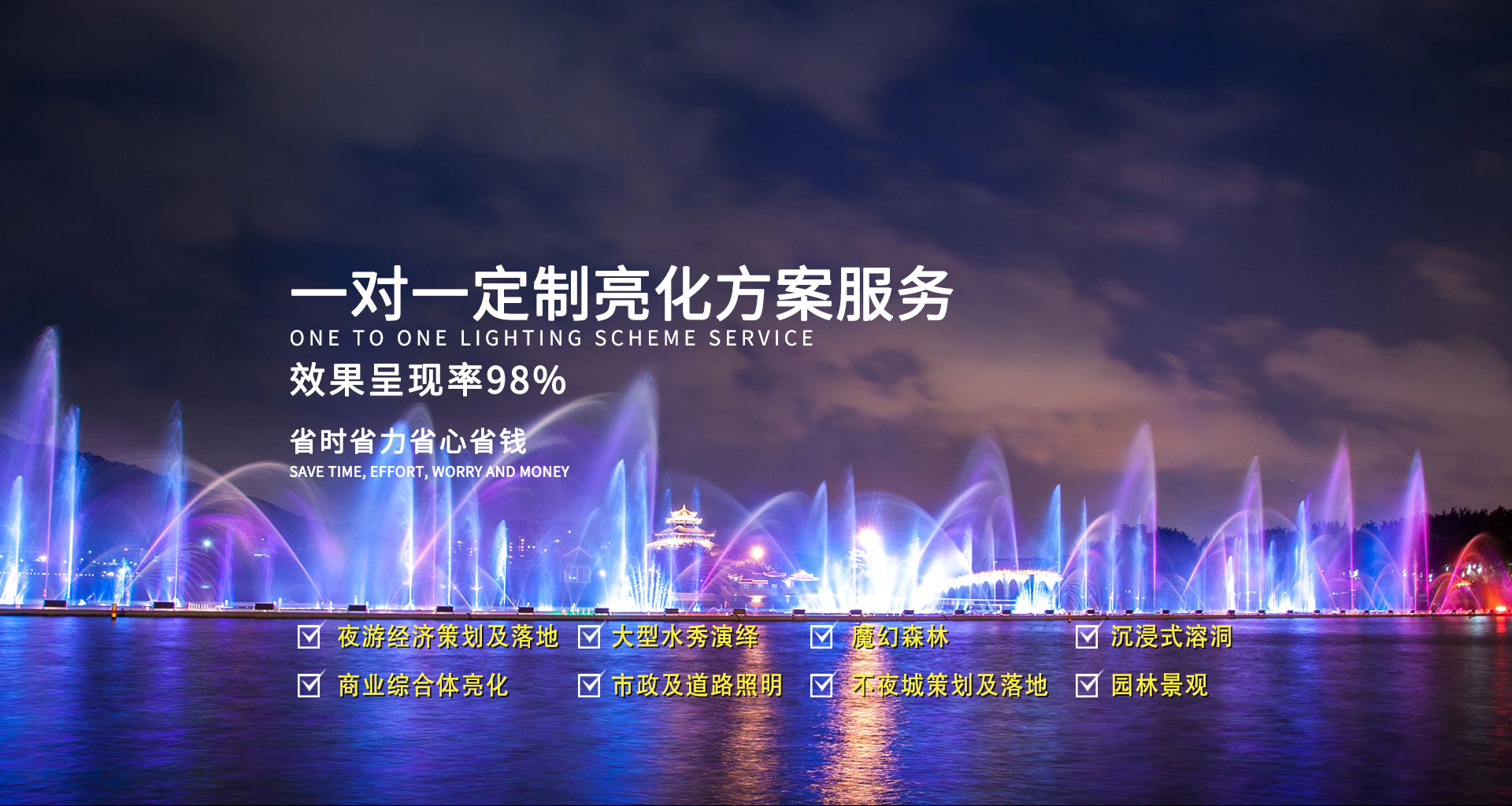 深圳市中筑景觀亮化照明科技有限公司,是一站式文旅夜游亮化工程服務(wù)商。采用國(guó)際先進(jìn)的燈光技術(shù)、智能控制系統(tǒng)、專(zhuān)業(yè)照明設(shè)計(jì)、專(zhuān)業(yè)的工程配套施工及照明產(chǎn)品服務(wù)為一體的綜合性照明企業(yè)。 為城市夜景、建筑照明、市政道路、橋梁亮化、商業(yè)綜合體照明、文旅夜游規(guī)劃、景區(qū)照明、沉浸式溶洞提供國(guó)際先進(jìn)的設(shè)計(jì)理念,為客戶量身定制夜游經(jīng)濟(jì)配套解決方案。將文化藝術(shù)、光影設(shè)計(jì)和互動(dòng)演繹于一體的綜合性視聽(tīng)產(chǎn)品,通過(guò)運(yùn)用聲、光、電、影、體、感技術(shù)打造主題夜游光影秀、光影森林、創(chuàng)意水秀、裸眼3D、沉浸式體驗(yàn)。 中筑景觀亮化照明“追光逐影”十九年歷程,為各大城市、景區(qū)、建筑提供出色的設(shè)計(jì)方案。同時(shí)注重科技自主創(chuàng)新,產(chǎn)品款式創(chuàng)新、技術(shù)創(chuàng)新、方案創(chuàng)新、為客戶創(chuàng)造更大價(jià)值與客戶互利共贏,共同發(fā)展,成就未來(lái)。